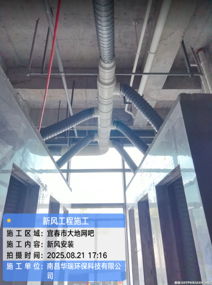 項目名稱:宜春市大地網(wǎng)吧新風(fēng)安裝施工時間:2025年8月21日