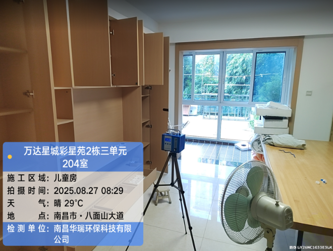 項目名稱:萬達星城彩星苑甲醛檢測施工時間:2025年8月27日