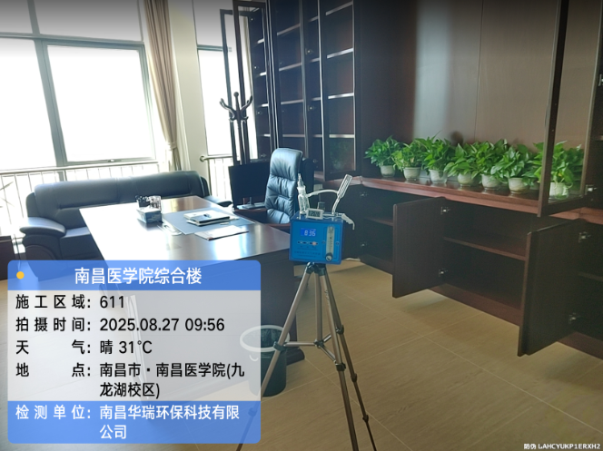 項目名稱:南昌醫(yī)學(xué)院(九龍湖校區(qū))甲醛檢測施工時間:2025年8月27日